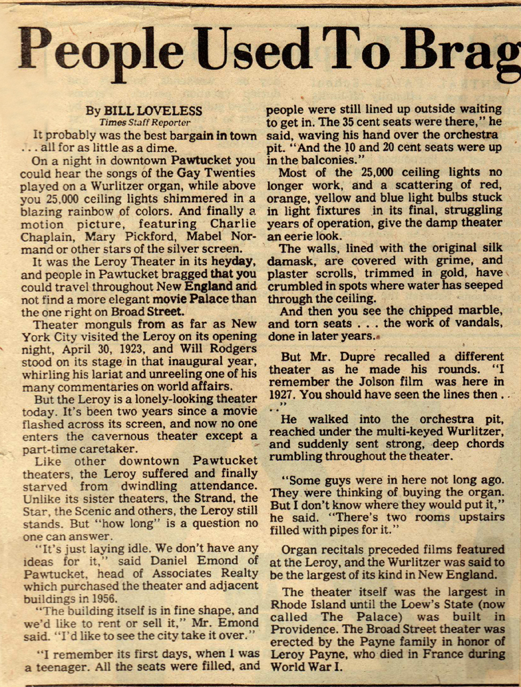 1973 PAWTUCKET TIMES ARTICLE